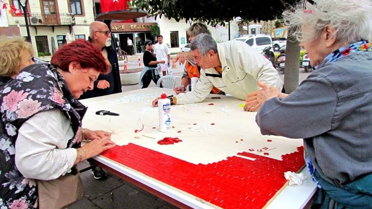 Projemiz altı gün sürecek. 29 Ekim akşamında Fener Alayı'nın ardından Başkanımız Lal Denizli ve Kaymakamımız Mehmet Maraşlı son parçaları yerleştirecek ve bayrağımız tamamlanmış olacak.”