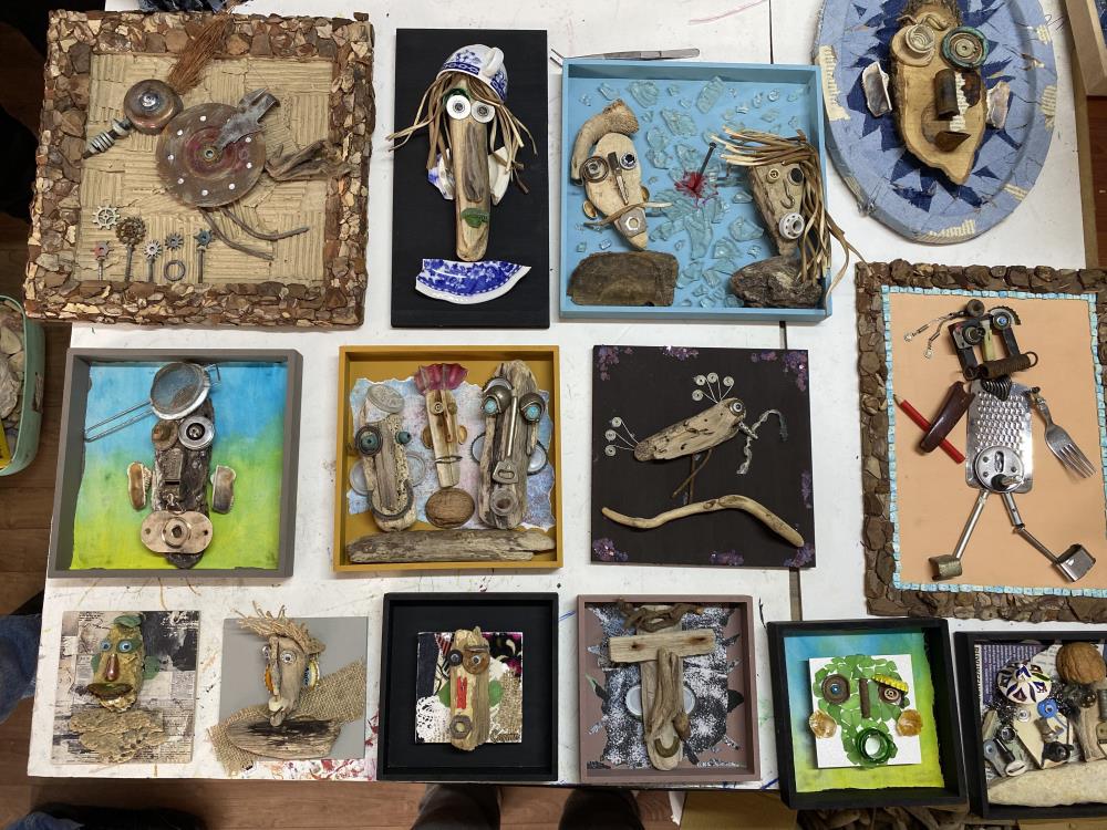 Atagöz, 33 yıl süren esnaflık döneminde sanattan kopmadığını belirterek, “Uzun Sokak’ta hediyelik eşya ve bijuteri üzerine bir dükkanım vardı. Dükkanın bir köşesinde sanatı sürdürdüm; karikatürle başlayan yolculuğuma heykeli ekledim. Seramik çamuruyla heykeller yapmak zordu; müşteri geldiğinde çalışmayı bırakmak zorunda kalıyordum. Ağabeyimin önerisiyle Alaçatı’da mozaik kursuna katıldım ve yaklaşık 1,5 yıl eğitim aldım. Bu süreç, doğadan topladığım malzemeleri de sanata dönüştürebileceğimi fark etmemi sağladı” dedi.