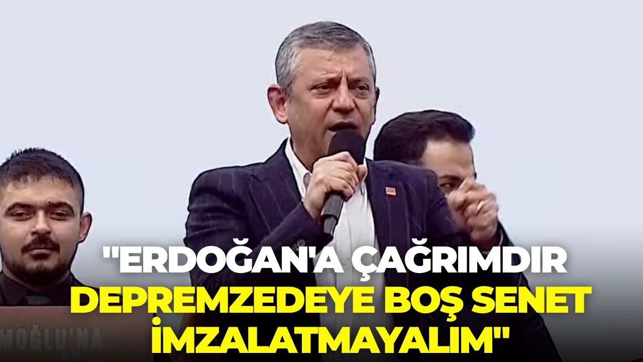 Özgür Özel, konuşmasının önemli bir bölümünü Cumhurbaşkanı Erdoğan’ın dış politika hamleleri ile deprem bölgesindeki tutumu arasındaki çelişkilere ayırdı. İktidarın bir dönem "katil" veya "darbeci" diyerek itham ettiği liderlerle bugün yan yana gelmesini eleştiren Özel, halkın bu tutarsızlığı gördüğünü belirtti. Deprem bölgesindeki inşaat süreci için toplanan 71 milyar dolarlık kaynağın akıbetini soran Özel, ek vergilerle halkın sırtına yüklenen maliyetlerin karşılığında depremzedelere "boş senet" imzalatılmasının bir utanç vesikası olduğunu söyledi. Vatandaşın 18 yıl boyunca borçlandırılmasını ve rezerv alan ilanlarıyla mülksüzleştirilmesini "kul hakkı yemek" olarak tanımlayan Özel, iktidarı bu faiz ayıbına son vermeye davet etti.