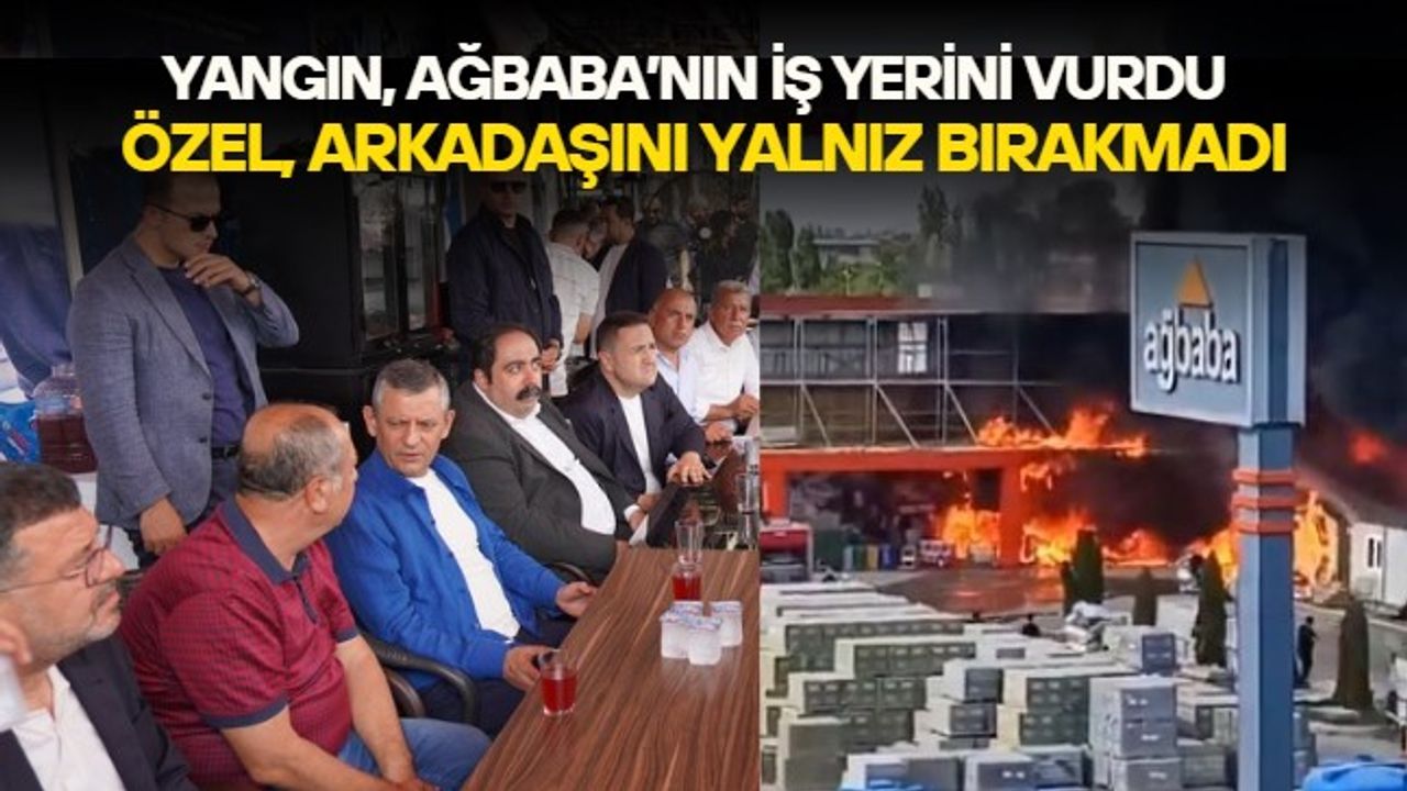 Özgür Özel'in en yakın kurmayları arasında yer alan Ağbaba'ya özel ziyaretin nedeni, Ağbaba ailesine ait inşaat malzemeleri satan iş yerinde geçtiğimiz 19 Temmuz'da yaşanan ve büyük maddi hasara yol açan yangındı.