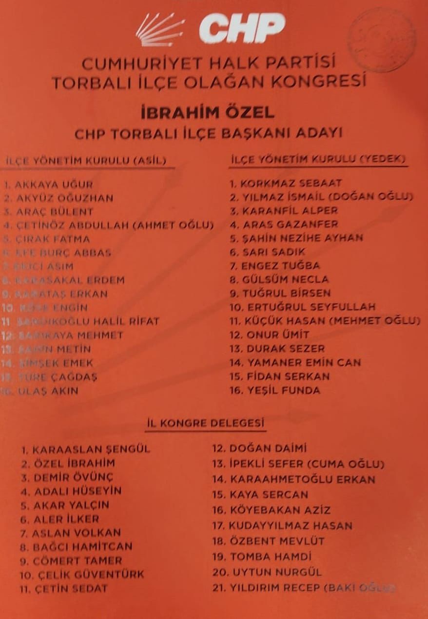 Öte yandan Torbalı’da İbrahim Özel’in tek aday olarak girdiği seçimde yönetim kurulu ve il kongresi delege listesi belli oldu.