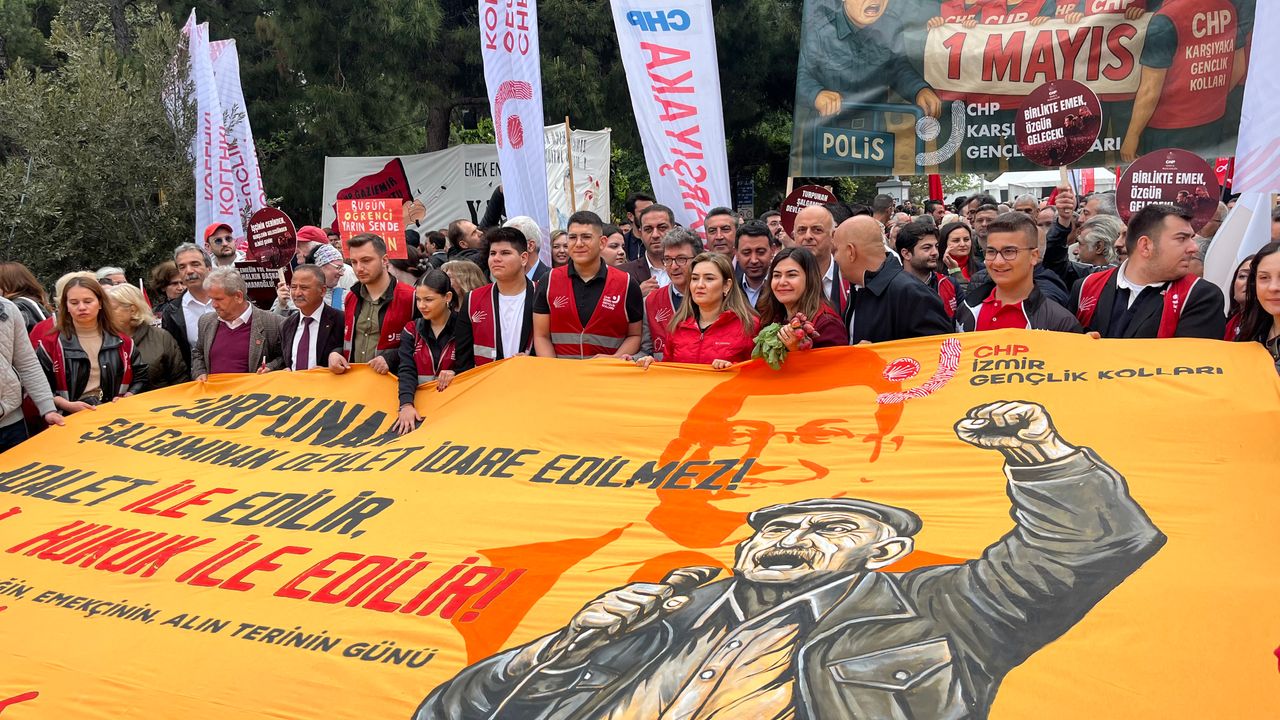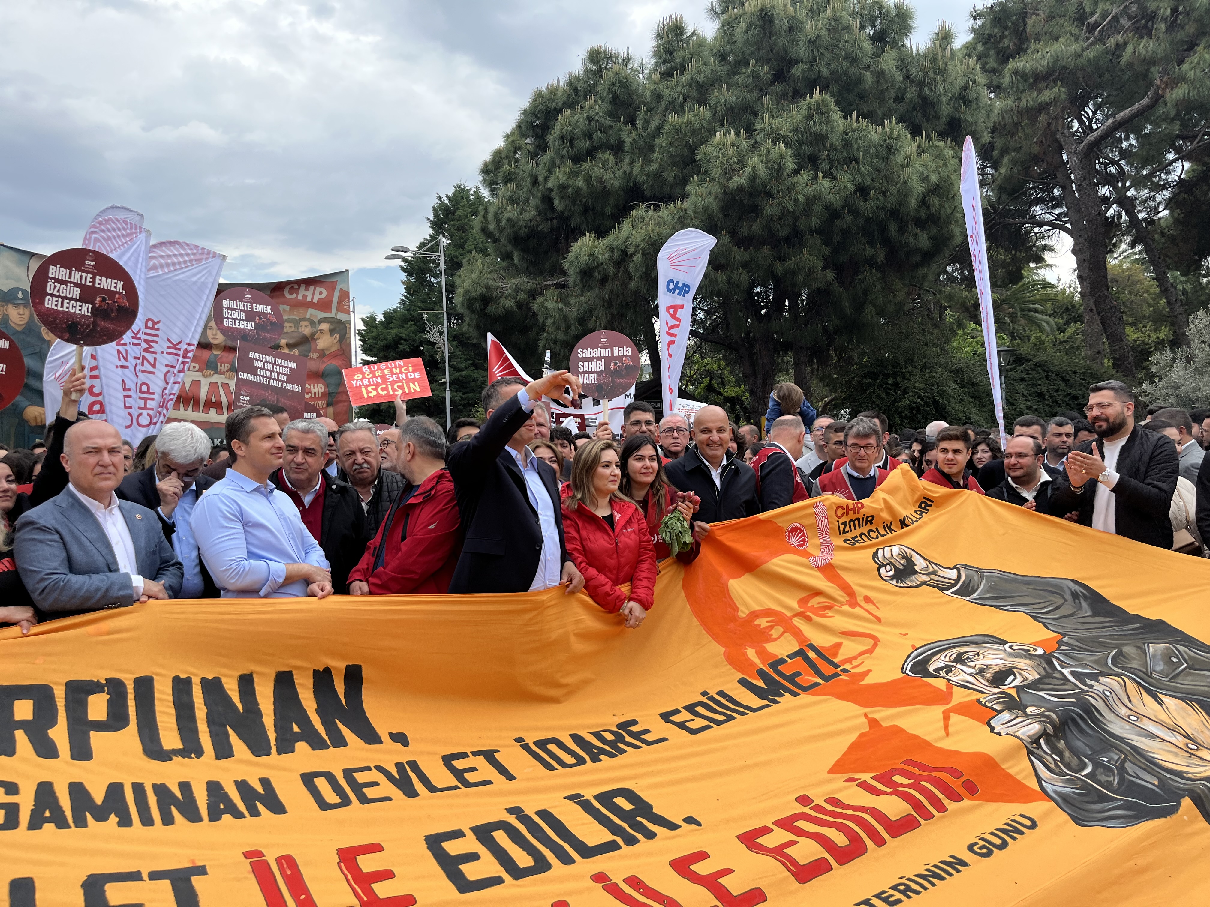 Son Mühür- Berivan Kaya/ 1 Mayıs İşçi Bayramı, İzmir’de coşkuyla kutlanıyor. CHP İzmir İl Başkanlığı, Lozan kapısı önünde örgütle bir araya gelerek Gündoğdu Meydanı’na yürüyor.