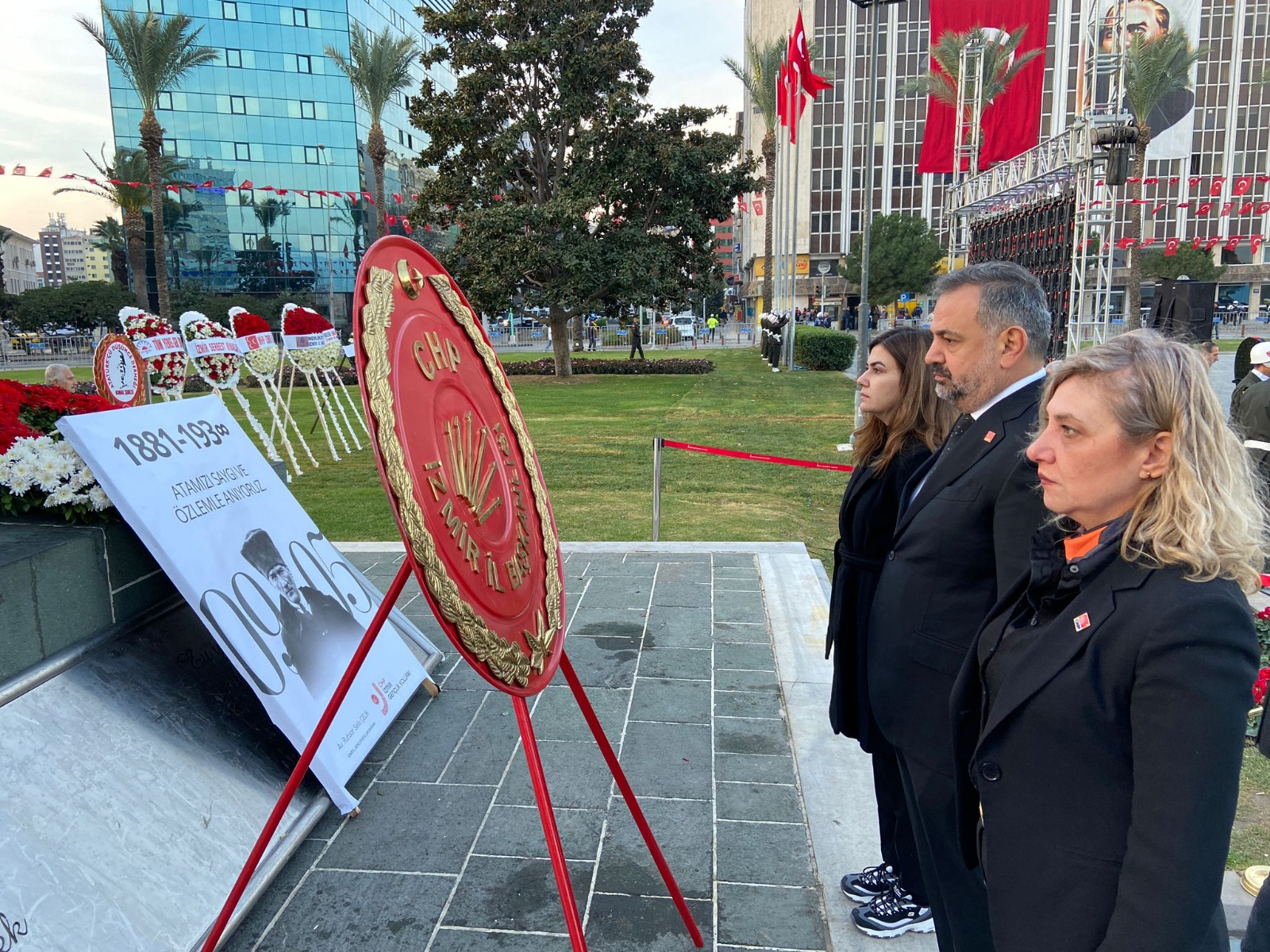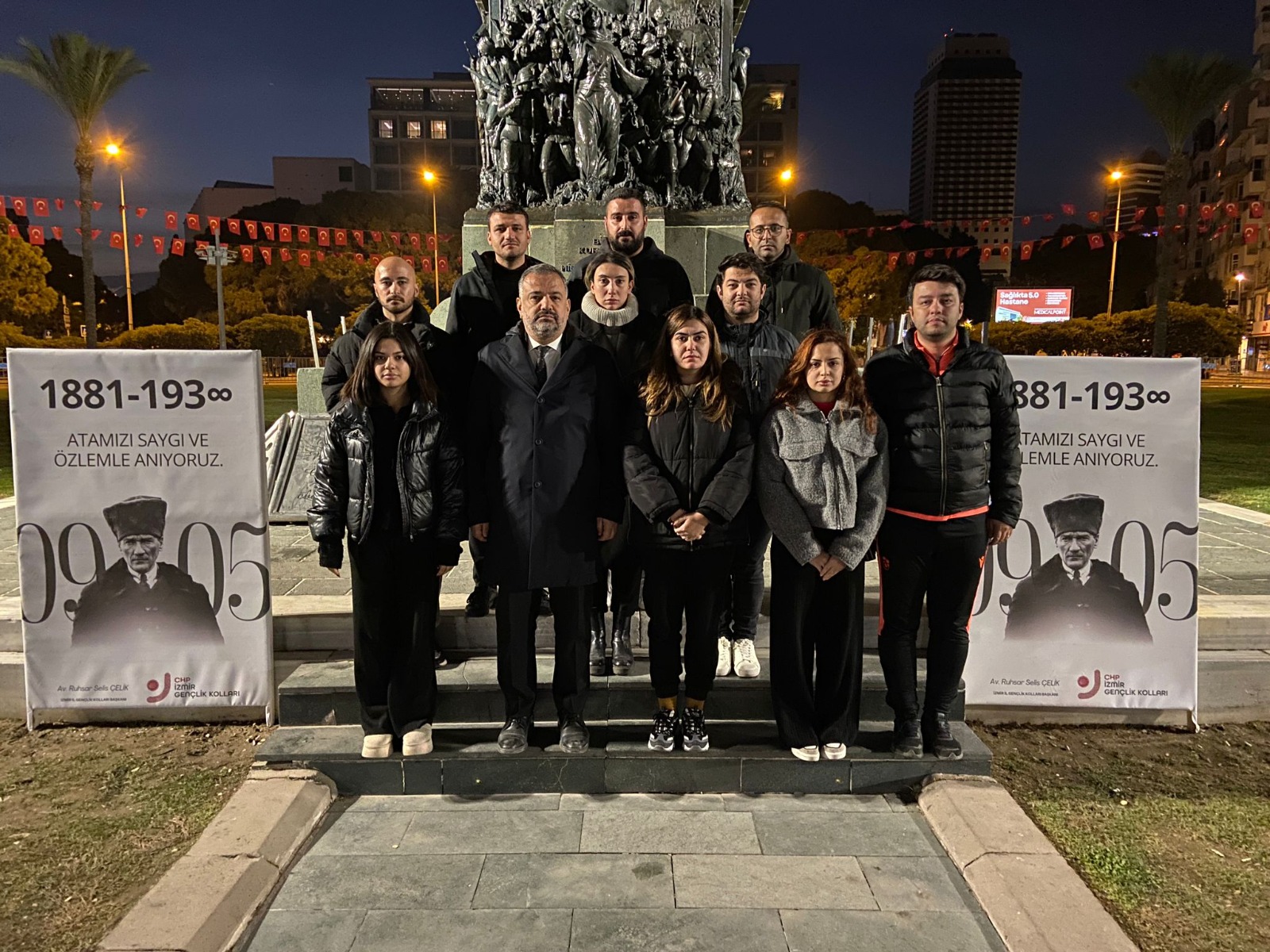 GAMZE ESKİKÖY- Cumhuriyet Halk Partisi (CHP) İzmir İl Gençlik Kolları, 86 yıl önce ebediyete intikal etmesinin yıl dönümünde gençler sabah 08:10’a kadar aralıksız nöbet tuttu. Gerçekleştirilen vefa törenine Karabağlar Belediye Başkanı Helil Kınay, Cumhuriyet Halk Partisi İzmir İl Başkanı Şenol Aslanoğlu, CHP İl Gençlik Kolu Başkanı Ruhsar Selis Çelik ve İl Kadın Kolu Başkanı Zahide Kurun katıldı.