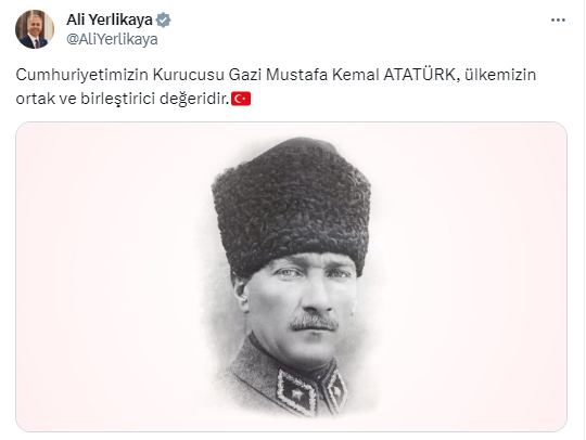 Suudi Arabistan'da oynanması planlanan Galatasaray-Fenerbahçe Süper Kupa finalinin ertelenmesinin ardından İçişleri Bakanı Ali Yerlikaya sosyal medya üzerinden Atatürk fotoğrafıyla birlikte 'Cumhuriyetimizin Kurucusu Gazi Mustafa Kemal ATATÜRK, ülkemizin ortak ve birleştirici değeridir' mesajı paylaşmıştı.