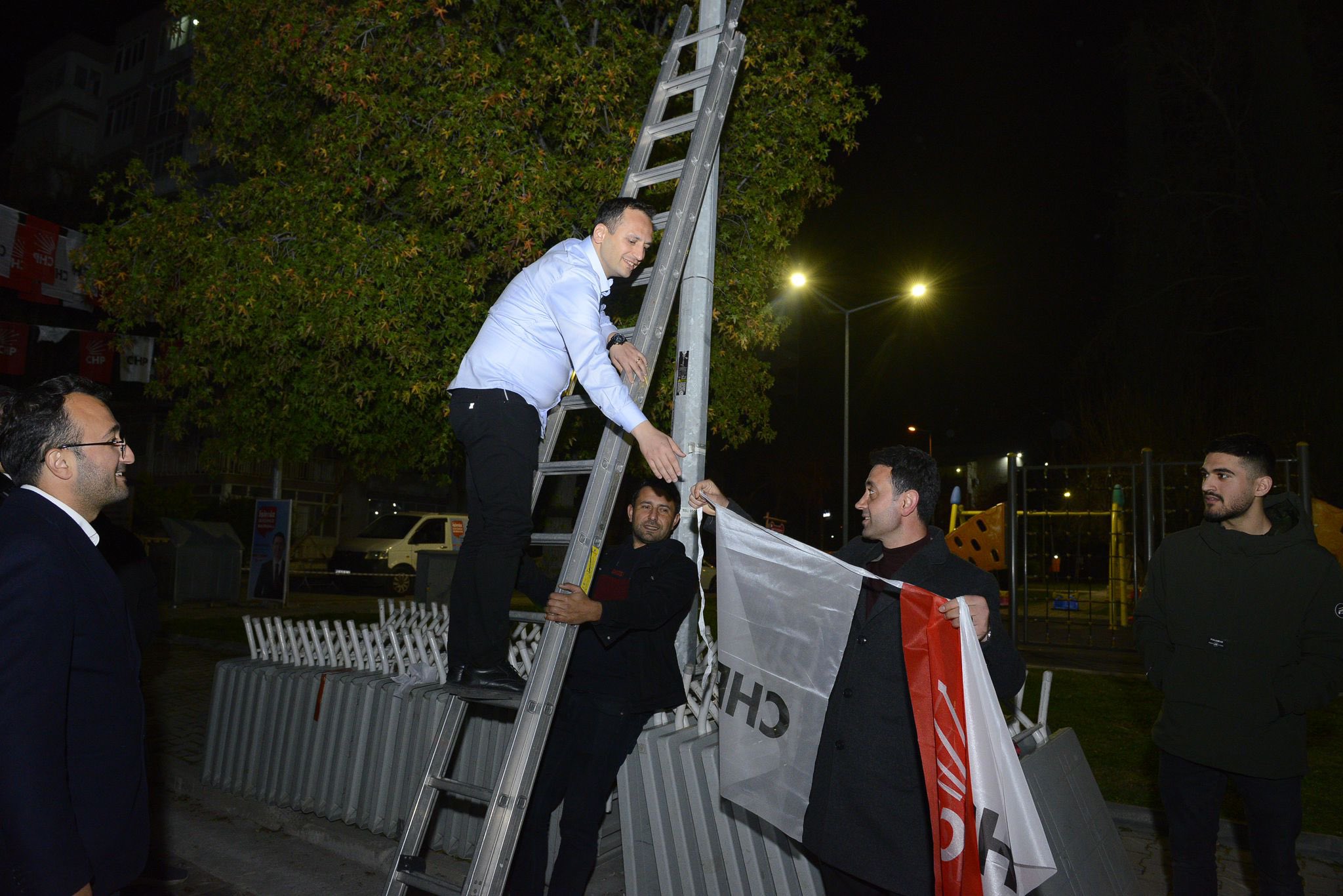Çok az öğrenci evine nasip olacak şekilde iki belediye başkan adayı birden çıkartan öğrenci evinde başlayan dostluk bugün CHP saflarında devam ediyor. Partinin gençlik kollarında yetişen İrfan Önal ve Ömer Eşki, Genel Başkan Özgür Özel’in İzmir programı için hazırlık yapan partili gençleri yalnız bırakmadı. Bayraklı’daki afişleme çalışmalarına destek olmak için merdivenlere tırmanıp bayrak asan İrfan Önal ve Ömer Eşki, üniversiteden başlayan dostlukla omuz omuza siyaset yapacaklarının mesajını verir gibiydi.