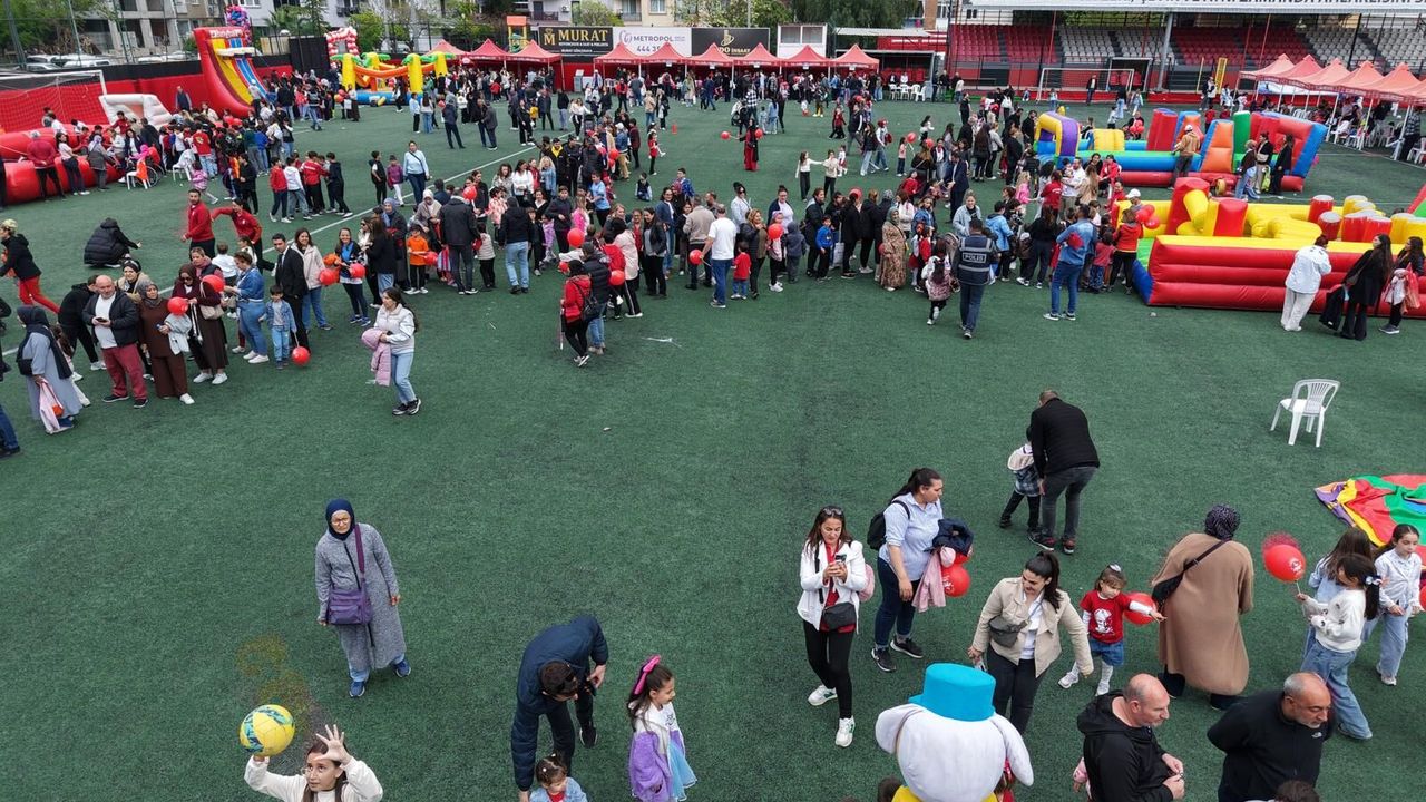Son Mühür/ Merve Turan- İzmir Çiğli’de bu yıl 23 Nisan kutlamalarının adresi Atatürk Stadı oldu. Sabah saatlerinden itibaren stadı dolduran çocuklar belediyenin hazırladığı etkinliklerle gün boyu kelimenin tam anlamıyla yerinde duramadı. Ailelerin de eşlik ettiği şenlikte şişme oyun parkurlarından yüz boyama stantlarına kadar her yer cıvıl cıvıldı.