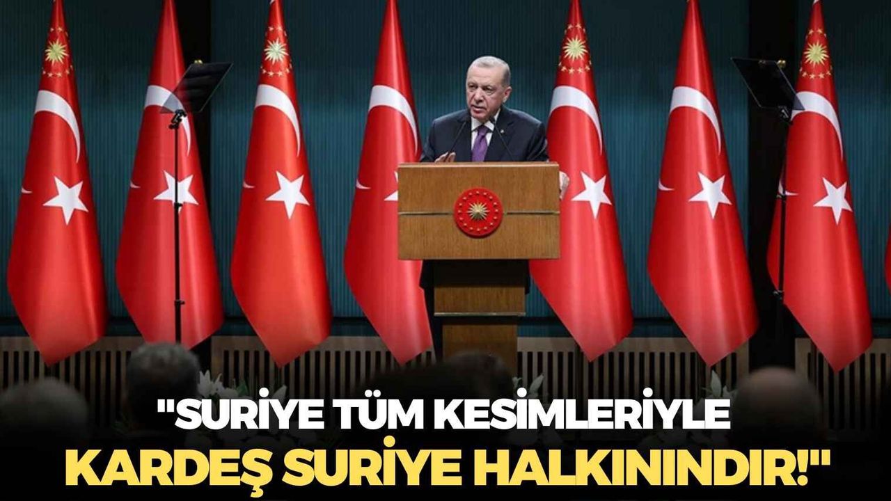 Suriye'deki son gelişmelere de değinen Erdoğan, "Suriye'deki her gelişmeyle çok yakından ilgileniyoruz. 8 Aralık devrimiyle kavuştuğu özgürlük ortamının kalıcı olması için çaba harcıyoruz. Suriye, Suriyelilerindir. Suriye tüm kesimleriyle kardeş Suriye halkınındır. Yüz binlerce insanın hayatına mal olan 13,5 yıllık zulmün ardından tarihi bir fırsat yakalandı. Suriye halkının kardeşi, komşusu, dostu bir ülke olarak hiçbir teşebbüse müsade etmeyiz. Tek devlet, tek ordu ilkesi bir ülkede olmazsa olmazdır. Halep'te başlayan askeri hareket dün ateşkes ile sonuçlandı. Suriye ordusunun bu hassas operasyonu büyük bir hassasiyetle yönetmesi her türlü takdire şayandır. Silahlı unsurların provokasyonlarına rağmen Suriye ordusu başarılı bir sınav vermiş, haksız duruma düşecek eylemlerden kaçınmıştır. Suriye ordusu en az hasarla durumu çözüme kavuşturmuştur. Tüm bunlar Suriye'de kalıcı barış için önemli kazanımlardır.