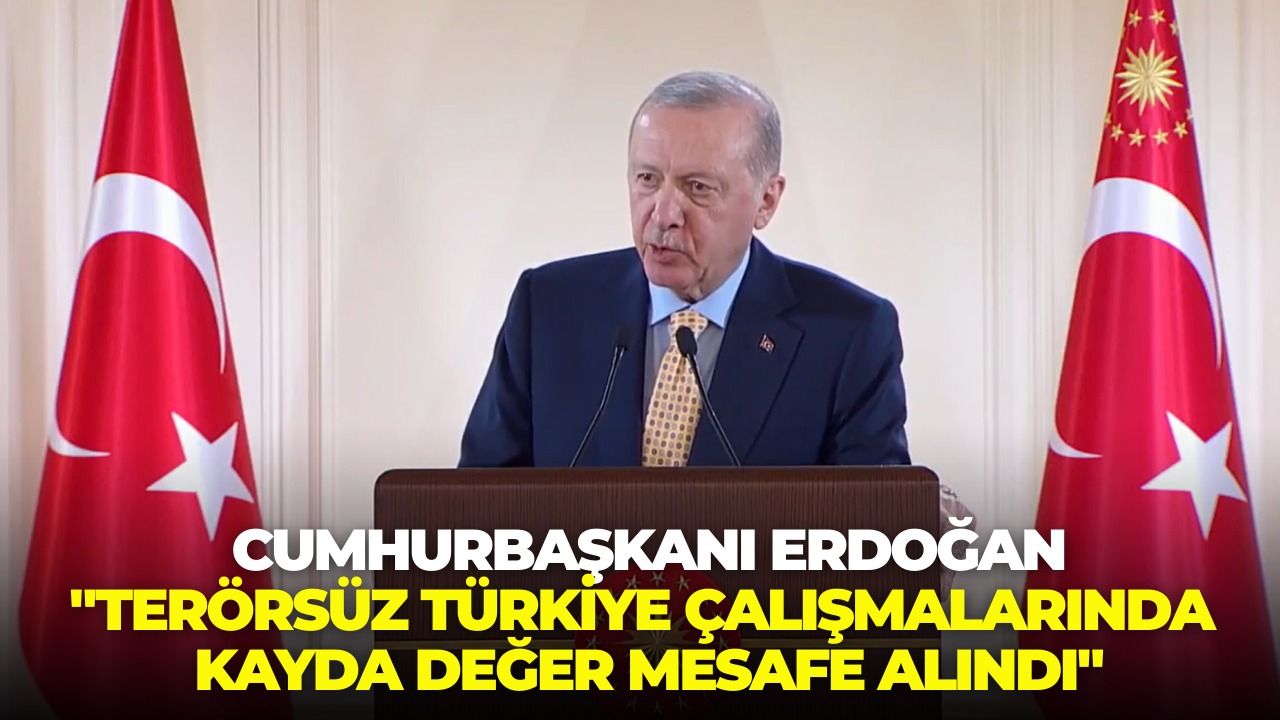 Bölgesel güvenlik ve terörle mücadele konusundaki kararlılığın meyvelerini vermeye başladığını ifade eden Cumhurbaşkanı Erdoğan, yaklaşık 1,5 yıl önce hayata geçirilen "Terörsüz Türkiye" projesinde önemli mesafeler katedildiğini açıkladı. Ülke içindeki ve dışındaki güvenlik risklerinin asgari seviyeye indirildiğini belirten Erdoğan, yaklaşık yarım asırdır Türkiye'nin enerjisini tüketen terör belasından milletin ebediyen kurtarılacağını vurguladı. Özellikle Suriye’nin kuzeyindeki istikrarsızlığa dair önemli bir gelişmeyi paylaşan Cumhurbaşkanı, bölgedeki sorunların kan dökülmeden çözümü noktasında geçtiğimiz ay bir uzlaşıya varıldığını ve tam entegrasyona giden sürecin resmen başladığını müjdeledi.