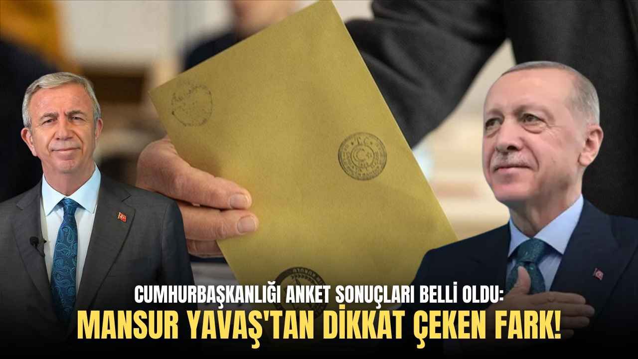 Anket sonuçlarına göre, Mansur Yavaş yüzde 54,6 oy oranına ulaştı. Cumhurbaşkanı Recep Tayyip Erdoğan ise yüzde 45,4’te kaldı. Böylece Mansur Yavaş, Erdoğan’a karşı 9 puanlık bir fark elde etti.