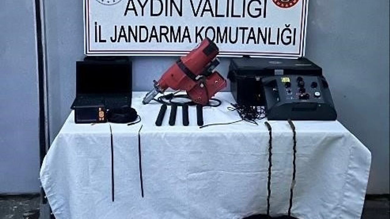 Bölgede ve şüphelilere ait araçlarda yapılan aramalarda kaçak kazıda kullanılan birçok cihaz ele geçirildi. Aramada; 1 yeraltı görüntüleme cihazı, cihazla bağlantılı bilgisayar, 2 yeraltı izleme cihazı (yılan kamera), 1 karot cihazı, 22 adet toplam 16,5 metre karot çubuğu ve sökme aparatı, 4 define arama çubuğu ile çeşitli kazı malzemeleri tespit edildi.