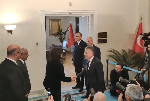 AK Parti grubunda gerçekleşen ziyarette, AK Parti Grup Başkanı Abdullah Güler, AK Parti Genel Başkanvekili Efkan Ala ve AK Parti Genel Başkan Yardımcısı ile Parti Sözcüsü Ömer Çelik hazır bulundu. AK Parti heyeti, DEM Parti heyetini kapıda karşıladı ve görüşmeler için grup toplantı salonuna yönlendirdi.