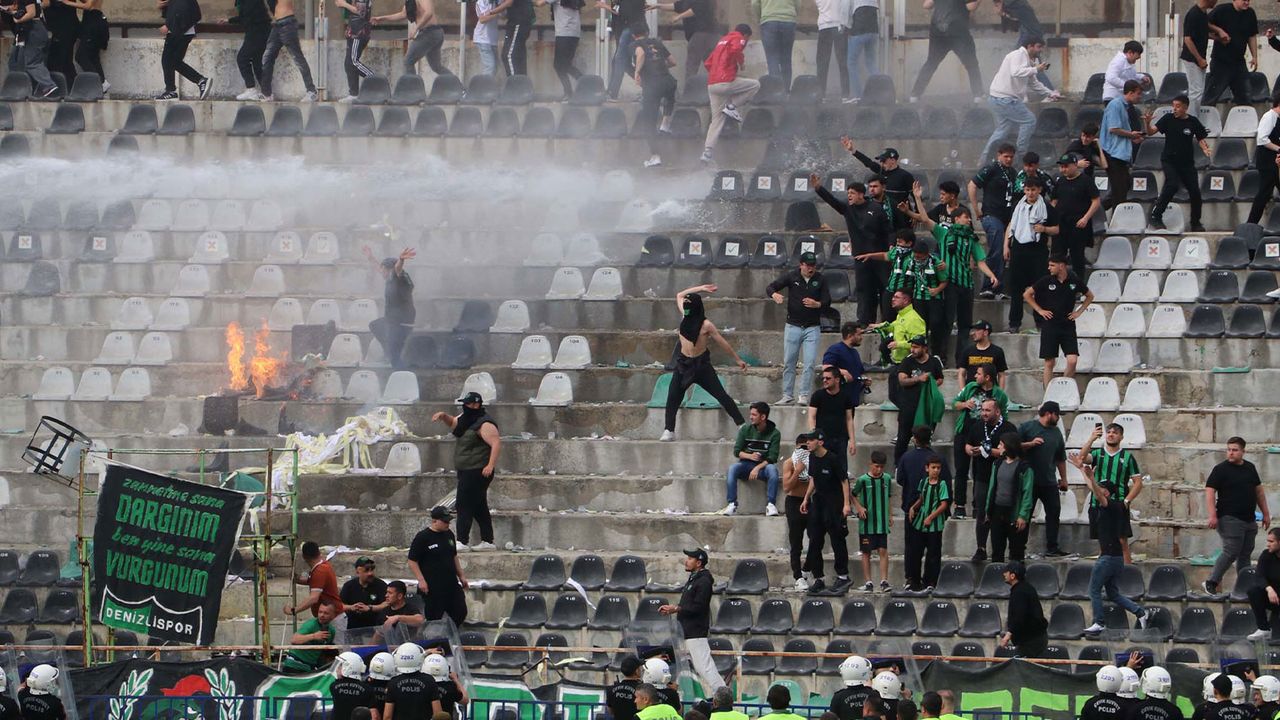 Maçın bitiş düdüğüyle birlikte Denizli Atatürk Stadı adeta bir savaş alanına döndü. Küme düşmenin şokunu ve üzüntüsünü yaşayan bir grup taraftar, tribünlerdeki koltukları sökerek parçalamaya başladı. Öfke dolu taraftarlar, söktükleri koltukları sahaya fırlatırken, bazıları da tribünleri ateşe verdi. Koltuklardan yükselen alevler kısa sürede büyüyünce, olay yerine itfaiye ekipleri sevk edildi. İtfaiye erleri yangını söndürmeye çalışırken, holiganlar bu kez de söktükleri koltukları itfaiye ekiplerine doğru fırlatmaya başladı. Yaşanan arbede ve tehlikeli durum üzerine, emniyet güçleri yoğun çaba sarf ederek olaylara müdahale etti ve taraftarları güçlükle sakinleştirdi.