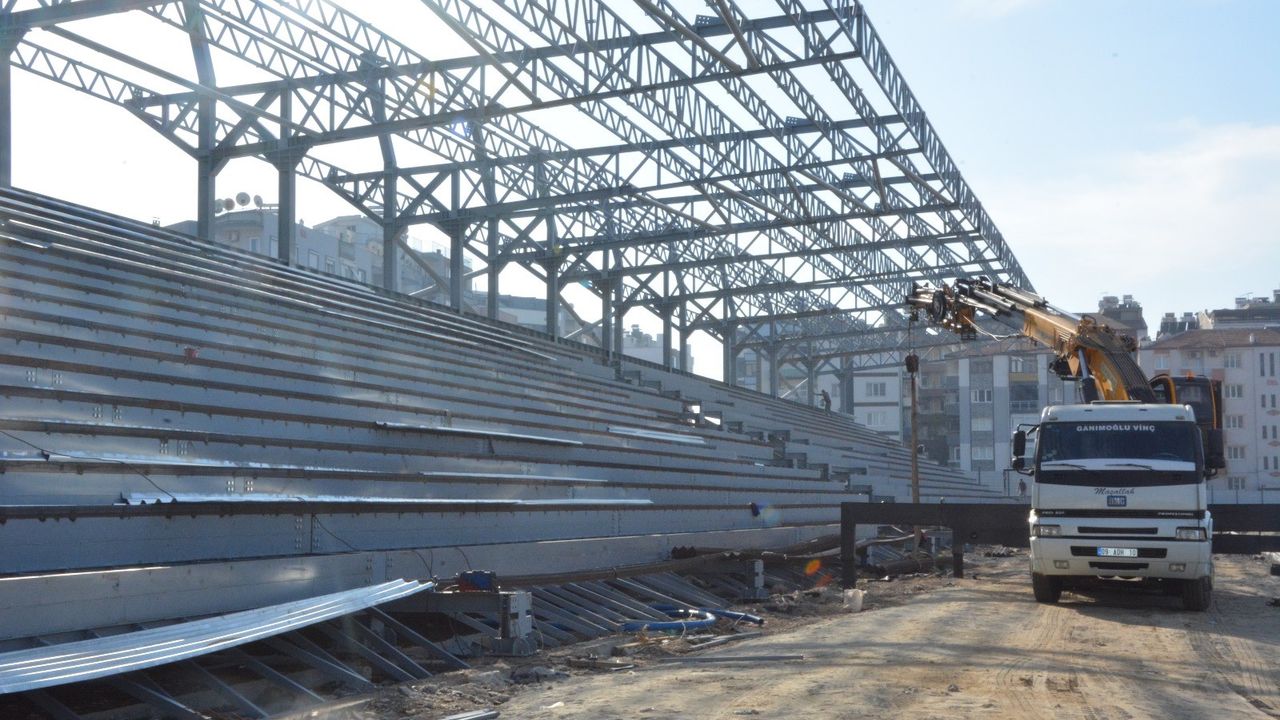 Adnan Menderes Stadı Şantiye Sorumlusu Kılıçaslan Bişmiş, projede herhangi bir gecikme yaşanmadığını belirterek çatı makasları, kaplama ve montaj çalışmalarının planlandığı şekilde sürdüğünü aktardı.