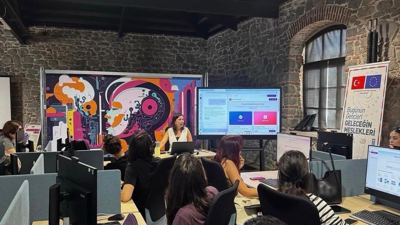 Endüstri Mühendisi Simge Erkin rehberliğinde verilen eğitimde katılımcılar, grafik tasarım platformu Canva’yı en ince detayına kadar öğrenerek kendi portfolyolarını hazırladı. Eğitim sonunda gençler, yapay zekâ desteğiyle özgün içerikler üretebilir hâle geldi. Programa 16–30 yaş arası gençler katıldı.