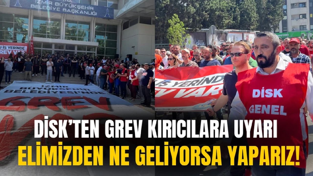 Son Mühür- Berivan Kaya- İzmir Büyükşehir Belediyesi’nde 23 bin işçi dün gece greve çıktı. Bugün sabah saatlerinde DİSK Genel İş İzmir şubesi önünde toplanan binlerce işçi grev yürüyüşüne başladı. İzmir Büyükşehir Belediyesi Ana hizmet binası önünde toplanan işçilere seslenen sendika grev kırıcılığına karşı TİS’ten kovma uyarısı yaptı.