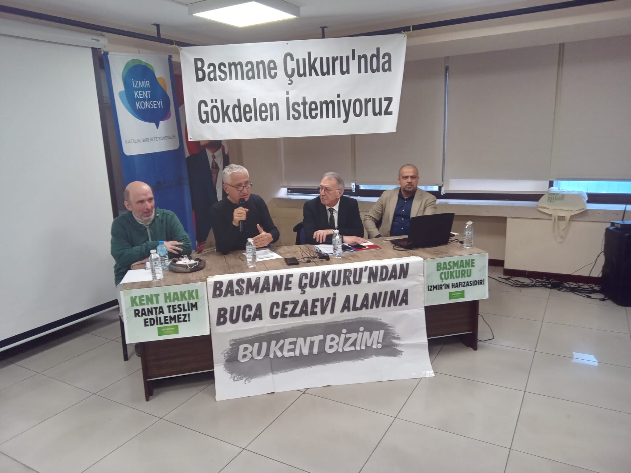 Konuşmasında Basmane Çukuru’nun tekil bir mesele olmadığını vurgulayan Sosyolog Engin Önen, "Başlığımız net; kamusal alanlara dönük saldırılar. Basmane Çukuru’nu konuşurken aslında eski cezaevi alanını da konuşuyoruz, İnciraltı’nı da konuşuyoruz, Çeşme projesini de konuşuyoruz. Bunların hepsi aynı mekanizmayla işliyor. Hepsi kamusal alanlar ve kent hakkı meselesidir. Ve şu hale bakın ki hepsi eş zamanlı olarak tehdit altında" dedi.