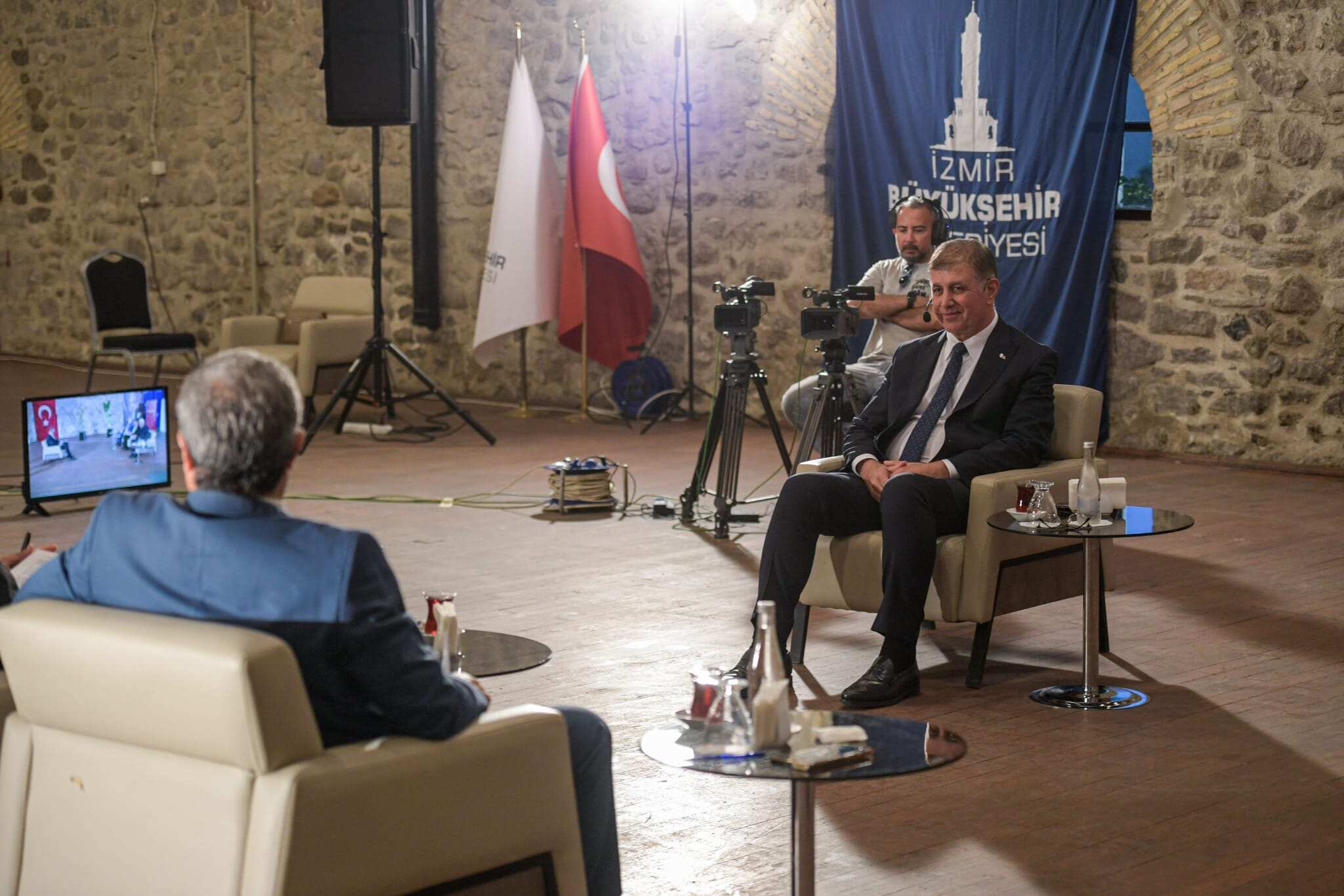 İzmir Büyükşehir Belediye Başkanı Dr. Cemil Tugay, Ulusal Kanal Ege Bölge Temsilcisi Muhammed Çopur, SKM Türk İmtiyaz Sahibi Yusuf Aktaş ve Avrupa Gazeteciler Derneği İzmir Temsilcisi Bora Koçu’nun sorularını yanıtladı. Tugay, kutuplaşmadan ekonomi yönetimine, çöp krizinden yangınlara, işçi haklarından milli müze projesine kadar geniş bir yelpazede değerlendirmelerde bulundu. Her soruya açık ve net cevap veren Tugay, “Bu çaba başarıya ulaşırsa bir anlamı olacak. Başarısız olursak çok önemli bir fırsatı kaçırmış olacağız. Ben harcanmaya razıyım. Yeter ki doğru noktaya gidelim.” diyerek dikkat çekti.