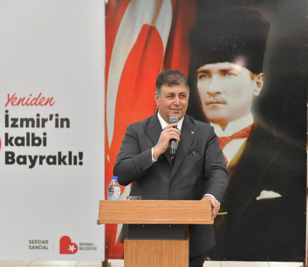 “Ben bu şehrin yetiştirdiği akıllı ve çalışkan çocuklardan biriyim. Çocukluğundan itibaren bu şehirden aldığı sevgi, saygı ve ilgiyi aklında ve vicdanında biriktiren İzmir’in evlatlarından biriyim. İnsanların umutsuzluğuna kayıtsız kalmamız mümkün değil. Bununla en ön safta mücadele etmek boynumuzun borcudur.