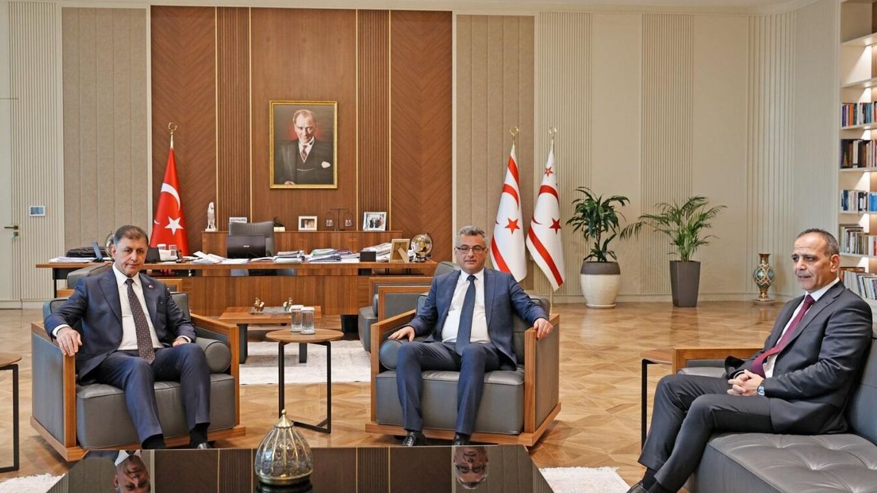 Son Mühür/ Beste Temel- İzmir Büyükşehir Belediye Başkanı Dr. Cemil Tugay, Kuzey Kıbrıs Türk Cumhuriyeti (KKTC) temasları kapsamında Lefkoşa’da bir dizi kritik görüşme ve iş birliği hamlesine imza attı. Program çerçevesinde ilk olarak KKTC Cumhurbaşkanı Tufan Erhürman tarafından kabul edilen Dr. Cemil Tugay, beraberindeki Kıbrıs gazileriyle birlikte gerçekleştirilen ziyarette iki toplum arasındaki tarihsel ve kültürel bağların altını çizdi. Lefkoşa Türk Belediyesi Başkanı Mehmet Harmancı’nın da eşlik ettiği görüşmede Cumhurbaşkanı Erhürman, İzmir heyetinin ziyaretinden duyduğu yüksek memnuniyeti dile getirerek iş birliği mesajlarını pekiştirdi.