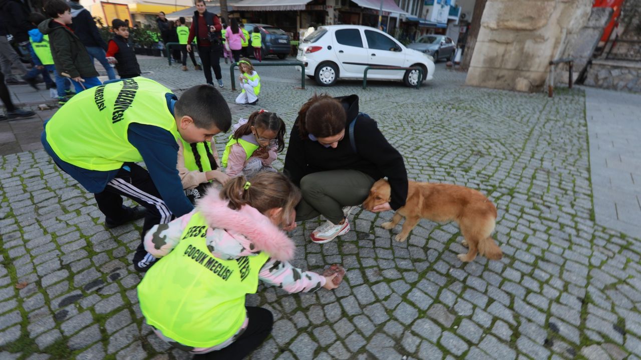 Çocuklar, kent sokaklarını gezerek belediyenin sokak hayvanları besleme noktalarına mama bıraktı. Ardından esnafa ve sokaktaki vatandaşlara mutlu yıllar dileyerek, can dostlarına verilmek üzere küçük paketler halinde mama hediye ettiler.