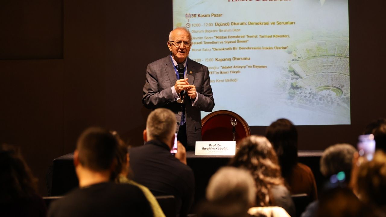 Etkinliğin onur konuğu İstanbul Barosu Başkanı Prof. Dr. İbrahim Kaboğlu, “Adalet Anlayışına Dayanan Cumhuriyetin İkinci Yüzyılı” başlıklı konuşmasında, demokrasinin temel amacının hak ve özgürlüklerin korunması olduğunu vurguladı. Kaboğlu, anayasanın ortak bir toplumsal miras olduğunu belirterek, demokrasinin adaletle birlikte anlam kazandığını ifade etti. Tüm baskılara rağmen toplumun geniş kesimlerinde demokrasi talebinin güçlü biçimde dile getirildiğine dikkat çekti.