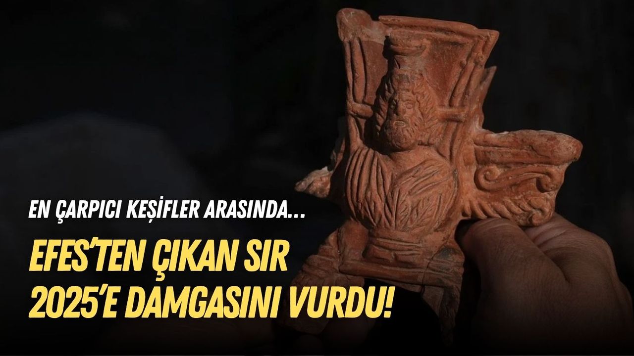 Bakan Ersoy, 2025 yılında yapılan kazı çalışmalarında öne çıkan en dikkat çekici 10 buluntuyu da kamuoyuyla paylaştı. Listeye İzmir’den giren Efes kazısı, çok kültürlü yapısıyla bir kez daha dikkat çekti. Efes’te bulunan ve üzerinde Mısır tanrısı Serapis’in kabartmasının yer aldığı pişmiş toprak tütsü kabı, antik dönemdeki inançlar arası etkileşime ışık tuttu.