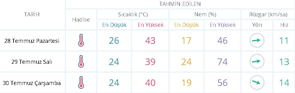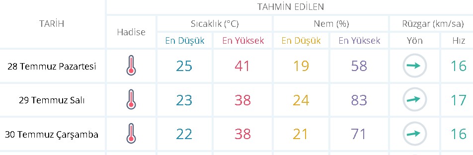 Son Mühür/Merve Turan- Temmuz ayının son günlerinde Ege Bölgesi, sıcak hava dalgasının etkisi altında kavrulmaya devam ediyor. Art arda gelen sıcaklık rekorları İzmir, Aydın ve Manisa’da vatandaşları zor durumda bırakırken, gözler yeni haftanın hava tahminlerine çevrildi. İşte Meteoroloji 2. Bölge Müdürlüğü verilerine göre 28 Temmuz Pazartesi gününden itibaren bölge genelinde beklenen hava durumu…