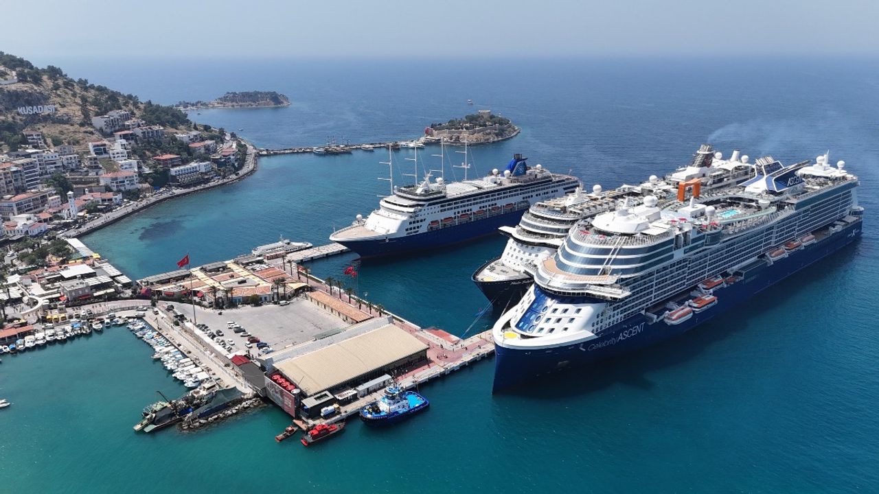 Aydın’ın Kuşadası ilçesi, Ege Port Limanı’nda adeta bir kruvaziyer şöleni yaşadı. Sabah saatlerinden itibaren sırayla limana demir atan Malta bayraklı "Marella Explorer", Bermuda bayraklı "Celestyal Journey", Norveç bayraklı "Viking Sea", Panama bayraklı "MSC Divina" ve "MSC Fantasia", toplamda 10 bin 916 yolcu getirdi. Turistlerin çoğunluğunu Amerika Birleşik Devletleri'nden gelen yolcular oluşturdu. Gemi personeliyle birlikte gün boyu liman bölgesi cıvıl cıvıl bir atmosfere büründü.