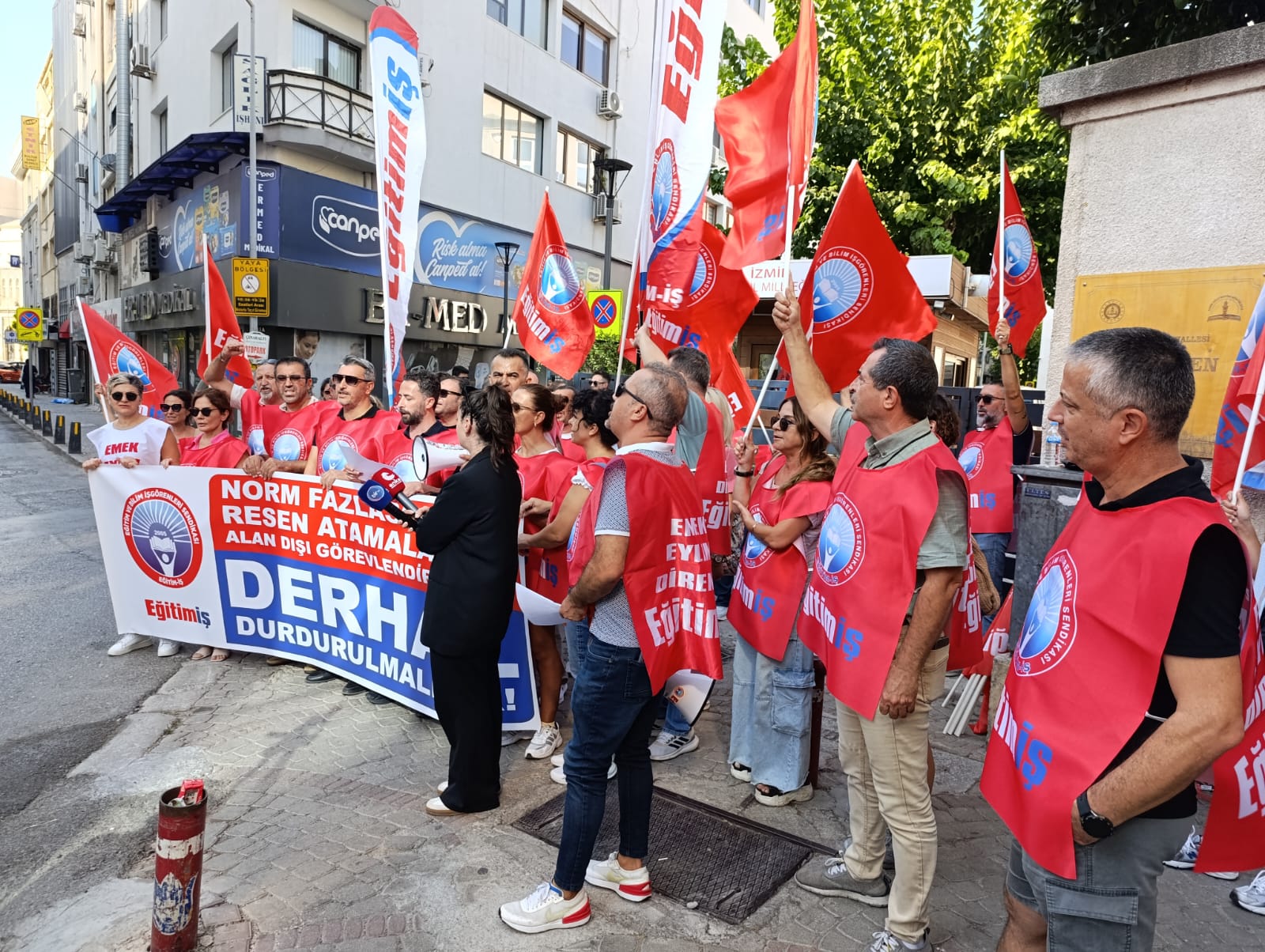 Eğitim ve Bilim İşgörenleri Sendikası (Eğitim-İş) tarafından İzmir İl Milli Eğitim Müdürlüğü önünde norm fazlası re’sen atamalar ve alan dışı görevlendirmelerin durdurulması talebiyle basın açıklaması düzenledi. Laik, bilimsel, demokratik eğitim talep eden Eğitim-İş üyeleri, Milli Eğitim Bakanı Yusuf Tekin'in istifasını istedi.
