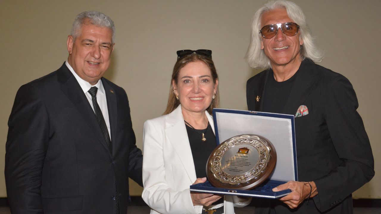 İzmir Emlakçılar Odası üyelerinin büyük ilgi ve katılım göstererek takip ettiği seminer sonunda oda başkanı Mesut Güleroğlu, kendisi de bir emlakçı olan eşi İzmir Ticaret Odası Meclis Üyesi Dilek Güleroğlu ile birlikte Dr. Sinan Ergin’e bir plaket de takdim etti.