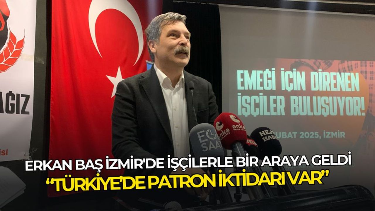 Son Mühür / Arif Enes Durak - Türkiye İşçi Partisi (TİP) Genel Başkanı Erkan Baş, İzmir’de işçi direnişlerine destek vermek amacıyla Türkan Saylan Kültür Merkezi’nde düzenlenen buluşmada işçilerle bir araya geldi. TELUS, DİGEL, Kent A.Ş, KFC-Pizza Hut, Bayraklı Belediyesi işçileri, madenciler ve metal işçileri gibi birçok sektörden emekçinin katıldığı toplantıda Baş, işçilerin hak mücadelesine destek verdi ve ekonomik sistemin işçileri sömürdüğünü vurguladı.