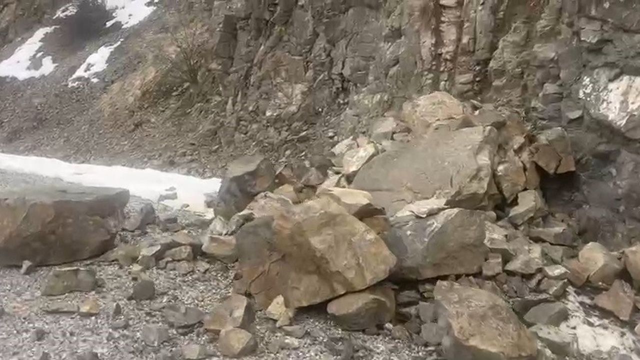 Yaşanan kaya düşmesi sırasında yoldan herhangi bir araç ya da yayanın geçmemesi, olası bir can kaybının önüne geçti