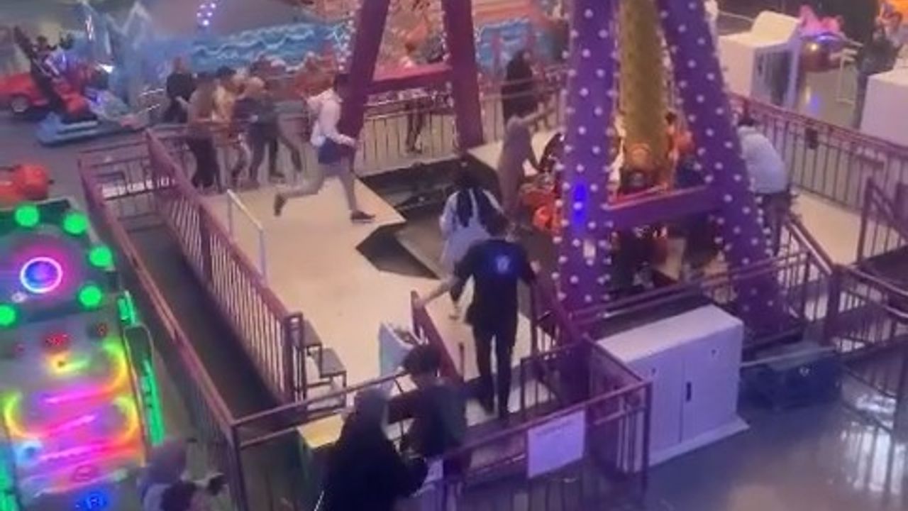 AVM'de faciadan dönüldü: Çocukların bindiği oyuncak devrildi. Eğlence parkında çocukların bindiği oyuncak devrildi, panik anları kameraya yansıdı.