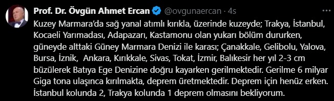 Son Mühür/ Beste Temel- Jeofizik Yüksek Mühendisi, Türkçe Dil Bilimci ve emekli İTÜ Öğretim Üyesi Prof. Dr. Övgün Ahmet Ercan, sosyal medya platformu X üzerinden Kuzey Marmara Fay Hattı'nın dinamiklerine dair dikkat çekici bir değerlendirme paylaştı.