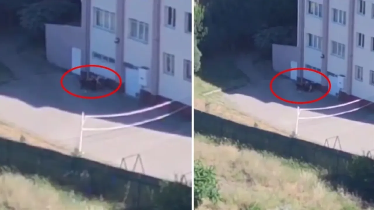 Hayli uzaktan çekilen videoda lisenin arkasında bankta bir kadın ile erkeğin ilişkiye girdikleri anlar kayda alındı.