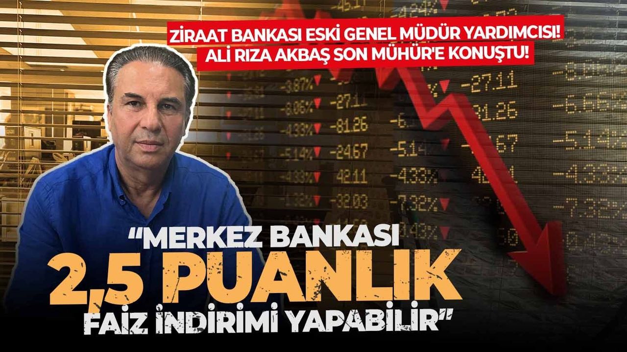 Son Mühür/Begüm Mol- Ali Rıza Akbaş, Merkez Bankası’nın bugün açıklayacağı faiz kararına ilişkin Son Mühür’e yaptığı değerlendirmede, “2,5 puanlık bir faiz indirimi bekliyorum. Belki 3 puana kadar çıkabilir ama büyük ihtimalle 2,5 puan civarında bir indirim gerçekleşecektir” dedi. Türkiye’deki mevcut faiz oranlarının dünya ortalamalarının çok üzerinde olduğunu belirten Akbaş, “Faiz oranları hem yatırımları hem de halkın alım gücünü olumsuz etkiliyor. Düşürülmesi piyasalar ve ülke ekonomisi açısından olumlu olur” ifadelerini kullandı.