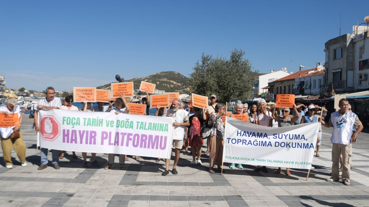 Son Mühür/ Beste Temel- İzmir'in Foça ilçesinde, "Foça Tarih ve Doğa Talanına Hayır Platformu" üyeleri, maden yasasında yapılan ve "talan yasası" olarak nitelendirilen 7554 sayılı kanunun iptali için Anayasa Mahkemesi'ne yapılan başvuruyu desteklemek amacıyla eylem düzenledi. Halk, ellerinde pankartlarla ve attıkları sloganlarla, yasanın getirdiği çevresel ve sosyal yıkıma karşı tepkisini dile getirdi.
