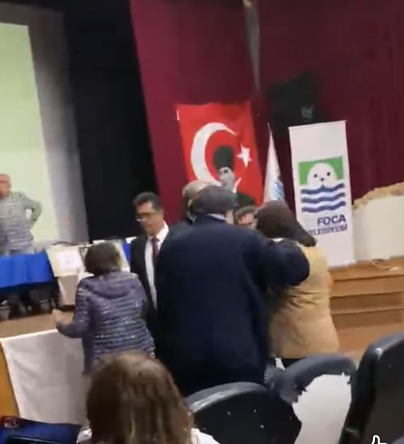 Seçim öncesinde söz almak isteyen Foça’da yaşayan Hakan Doğanay, derneğin eski yöneticileri ve belediye yönetimine yönelik eleştirilerde bulunmak istedi. Ancak Doğanay’ın konuşmasına izin verilmemesi üzerine salonda tartışma çıktı. Tartışmanın büyümesiyle birlikte Doğanay, görevliler tarafından salon dışına çıkarıldı.