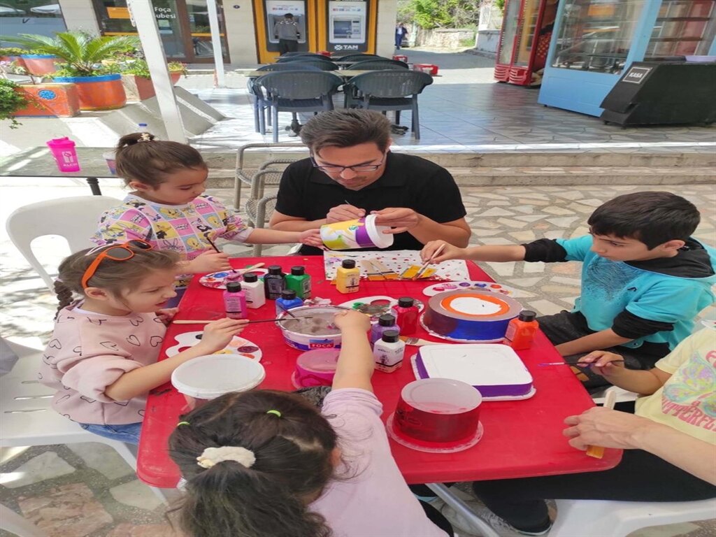 Etkinliğe babalar ve çocukları birlikte katıldı. Geri dönüştürülebilir plastik kaplar boyanarak sokak hayvanları için su kaplarına dönüştürüldü.
