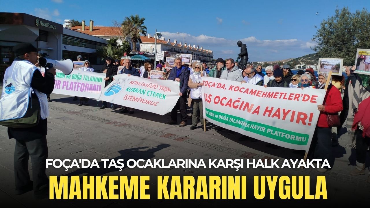 Açıklama, "Foça Tarih ve Doğa Talanına Hayır Platformu olarak, mahkeme kararının uygulanarak Kocamehmetler köyü ile birlikte tüm Foça'nın doğal yasamını ve insan sağlığını olumsuz etkileyen bu iki taş ocağının faaliyetlerinin bir an önce son bulmasını talep ediyoruz" ifadeleriyle sona erdi.
