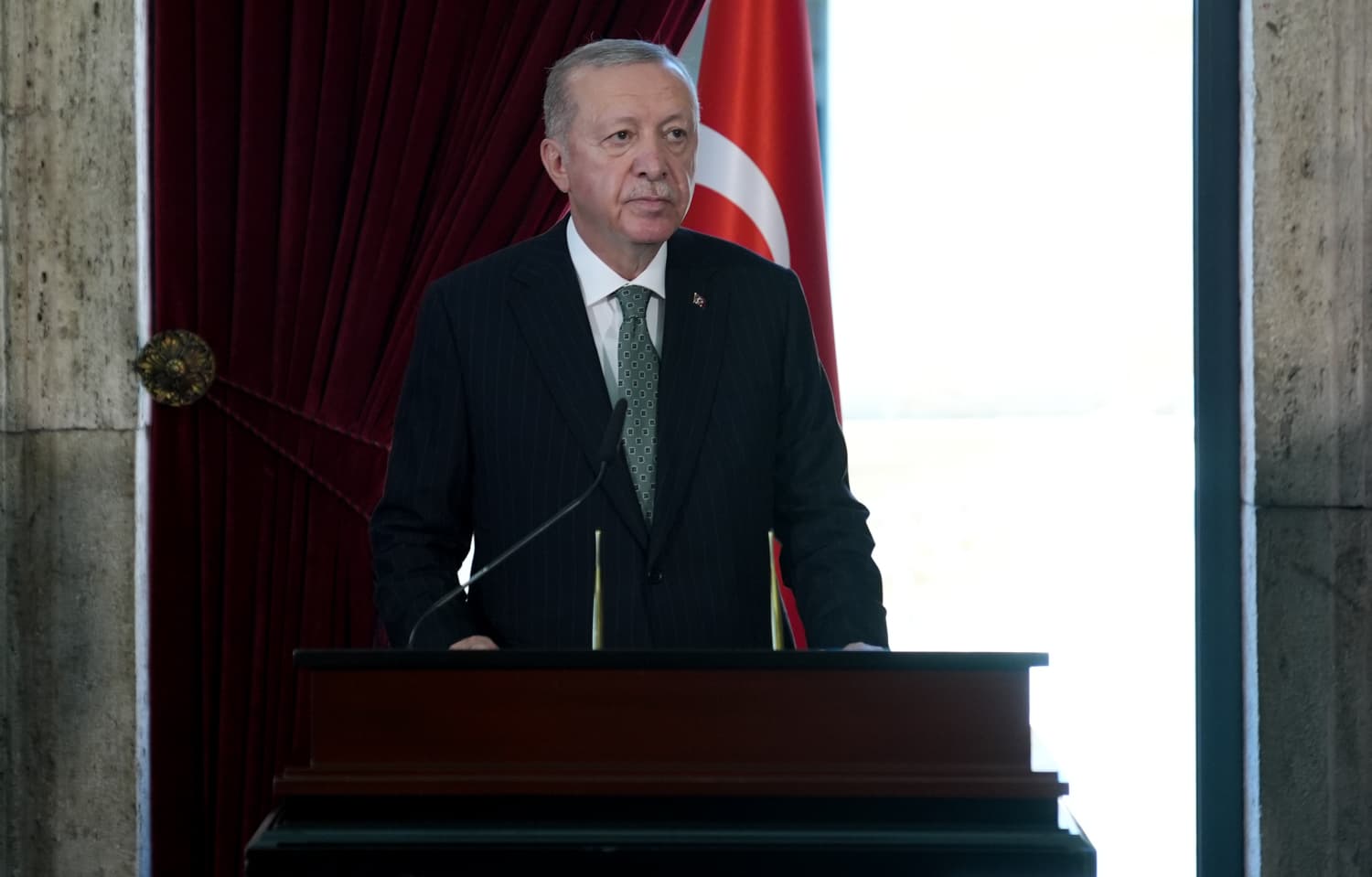 Cumhurbaşkanı Erdoğan, Anıtkabir’de Gazi Mustafa Kemal Atatürk’ün mozolesine ay yıldız motifli çelenk bıraktı.