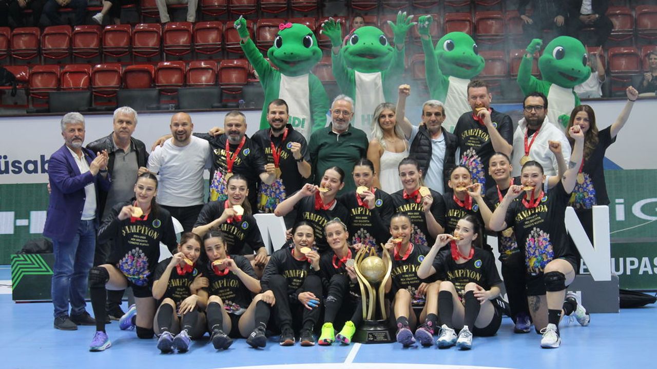 Bursa Büyükşehir Belediyesi şampiyonluk kupasını ve altın madalyalarını THF Başkanı Mesut Çebi’nin elinden aldı.