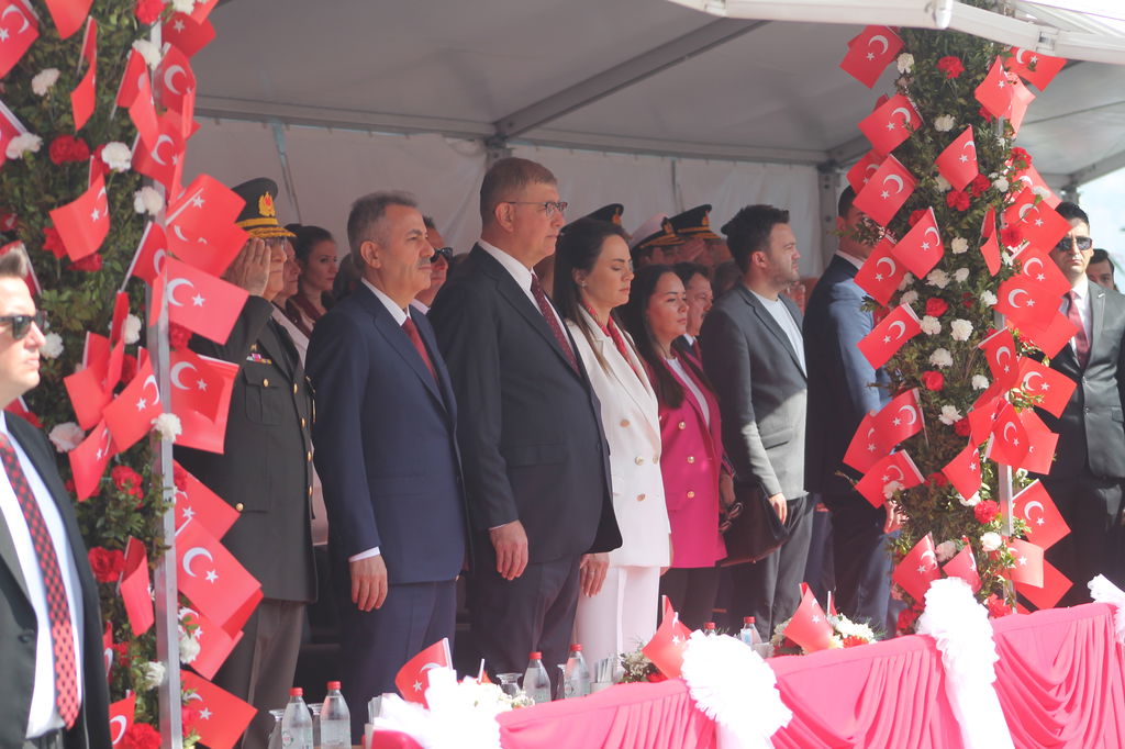 Törende konuşan İzmir İl Milli Eğitim Müdürü Ömer Yahşi, çocukların gelecek üzerine kurulan her rüyanın özneleri olduğuna dikkat çekerek, “Uğruna en ağır bedeller ödendiği vatan toprağımızın her karışında, kahraman ecdadımızın hayalleri, rüyası, duası var. Sizler tarihi şanlı zaferlerle, fetihlerle dolu büyük bir milletin evlatlarısınız. Sizler; gelecek üzerine kurulan her hayalin, her duanın ve her rüyanın öznesisiniz. Sizler, bu toprağın yarına yazdığı en güzel cümle, en parlak düş, en kıymetli emanetsiniz. Türkiye yüzyılını bin yıllara taşıma gayretimizin de ilham kaynağısınız. Aziz milletimizin asırlardır yoğurduğu kültür hazinesini omuzlayacak, onu yepyeni fikirlerle ve eserlerle çağlar ötesine taşıyacaksınız. Bu şanlı bayrak sizin, bu cennet vatan, bu Cumhuriyet sizin” dedi.