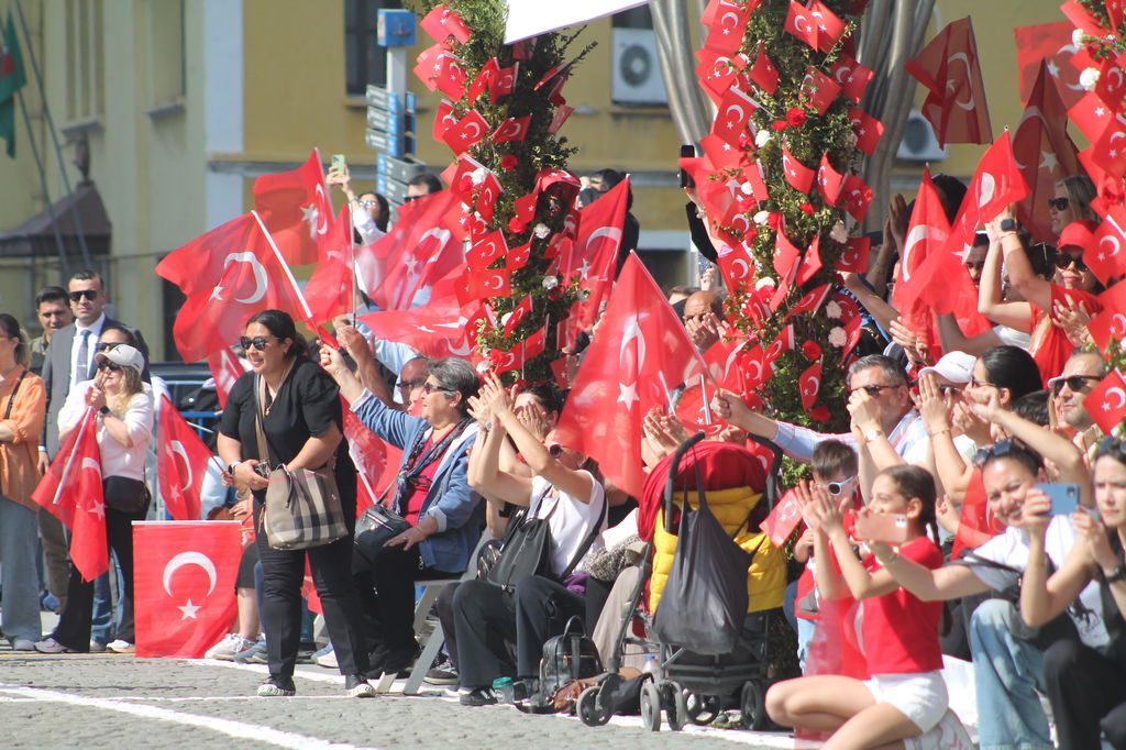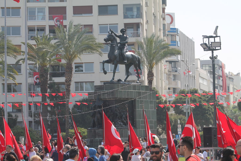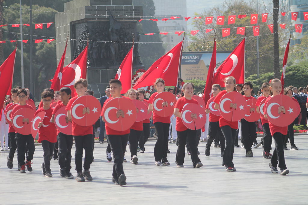 Cumhuriyet Meydanı’na ellerinde bayraklarla akın eden veliler ve İzmirliler, çocukların gösterilerine alkışlarıyla destek oldu.