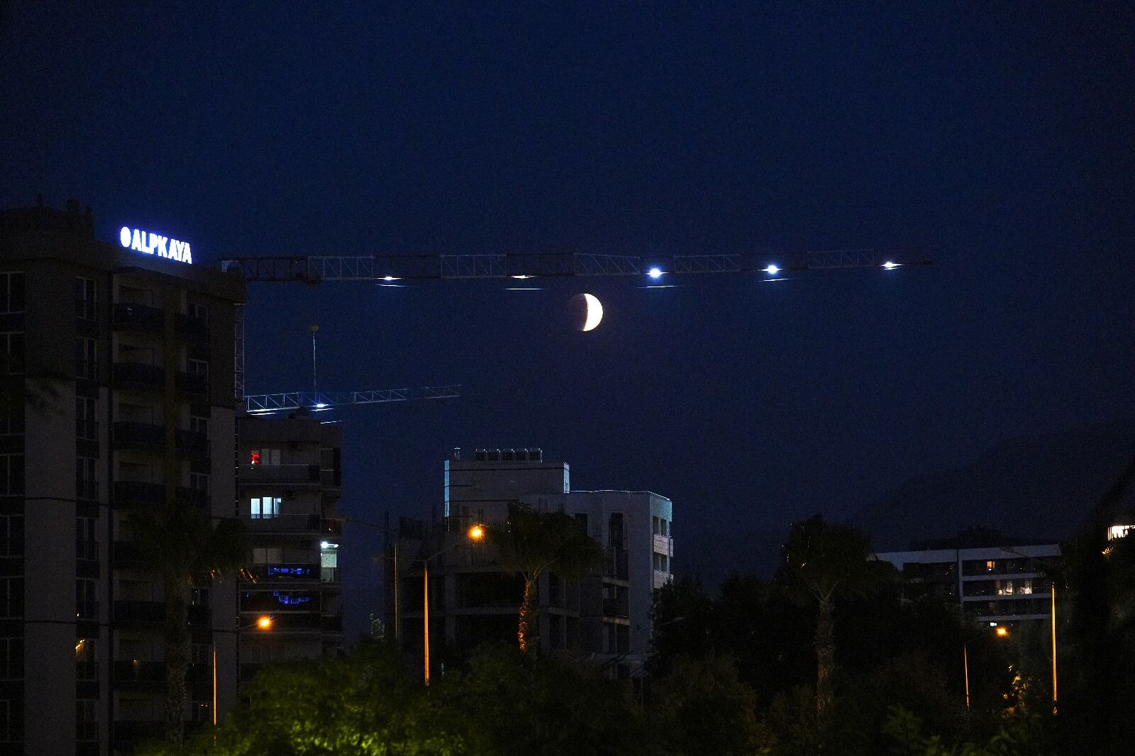 Kırmızıya bürünen dolunay, halk arasında “Kanlı Ay” olarak bilinen tutulma sırasında gözlemlendi.
