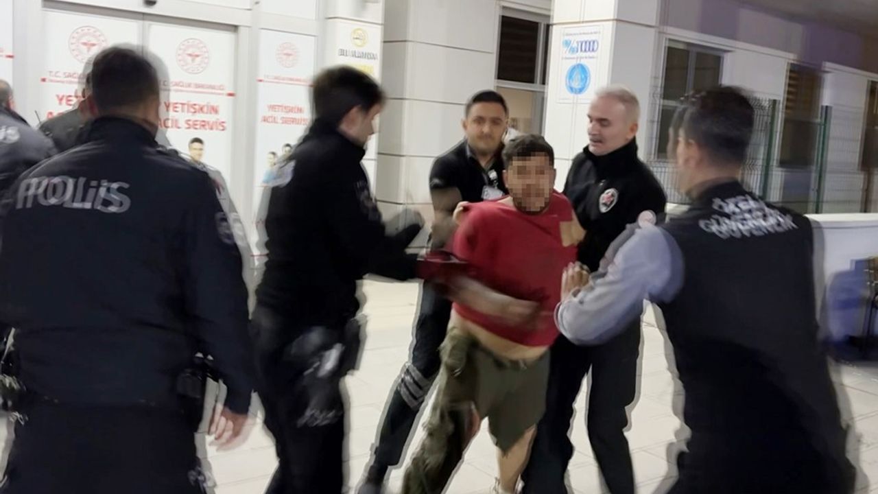 Yaşanan gerginlik kameralara yansırken, hastane güvenliği ve polis ekipleri şahsı güçlükle kontrol altına aldı.