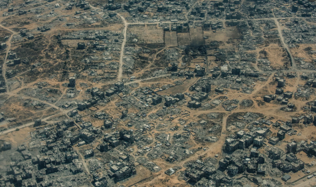 İngiltere'nin önde gelen gazetelerinden The Guardian, son iki yıldır İsrail ordusunun saldırılarıyla büyük yıkıma uğrayan Gazze Şeridi'ni havadan görüntüledi. Gazete, yardım malzemesi taşıyan Ürdün askeri uçağına binerek bölgeyi gözlemleme izni aldı.