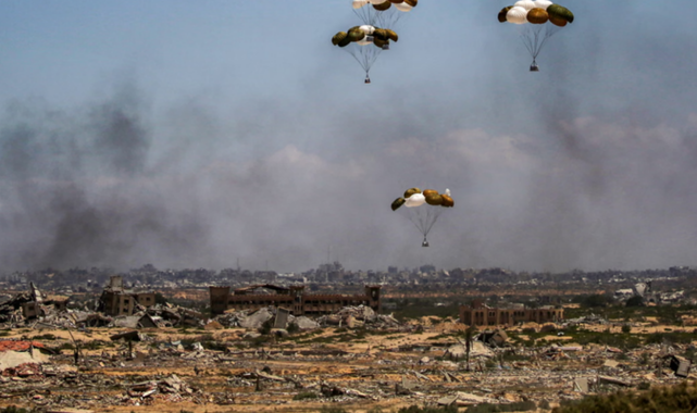 Gazze'de artan gıda ve tıbbi malzeme eksikliği nedeniyle, geçtiğimiz hafta açlıktan kaynaklanan ölümlerin artması sonrası insani yardım malzemelerinin bölgeye koordineli olarak atılması operasyonları yeniden başladı. The Guardian'ın katıldığı uçuş, İsrail'in iki yıldır devam eden askeri operasyonlarının yarattığı yıkımı net şekilde gösterdi.