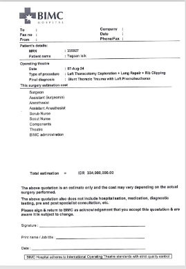 2 farklı ameliyat gerek ve talep ettikleri rakamlar Endonezya Rupisi cinsinden orda yazıyor. Yaklaşık 1 Milyon TL. Bu iki ameliyattan sonra bel kayması var onun tedavisi için yine yaklaşık 500 bin TL. Kaldığı yer geceliği bin 500 dolar. 1 ay yatması gerek. Sonuç 100 bin dolardan belki de fazla bile.