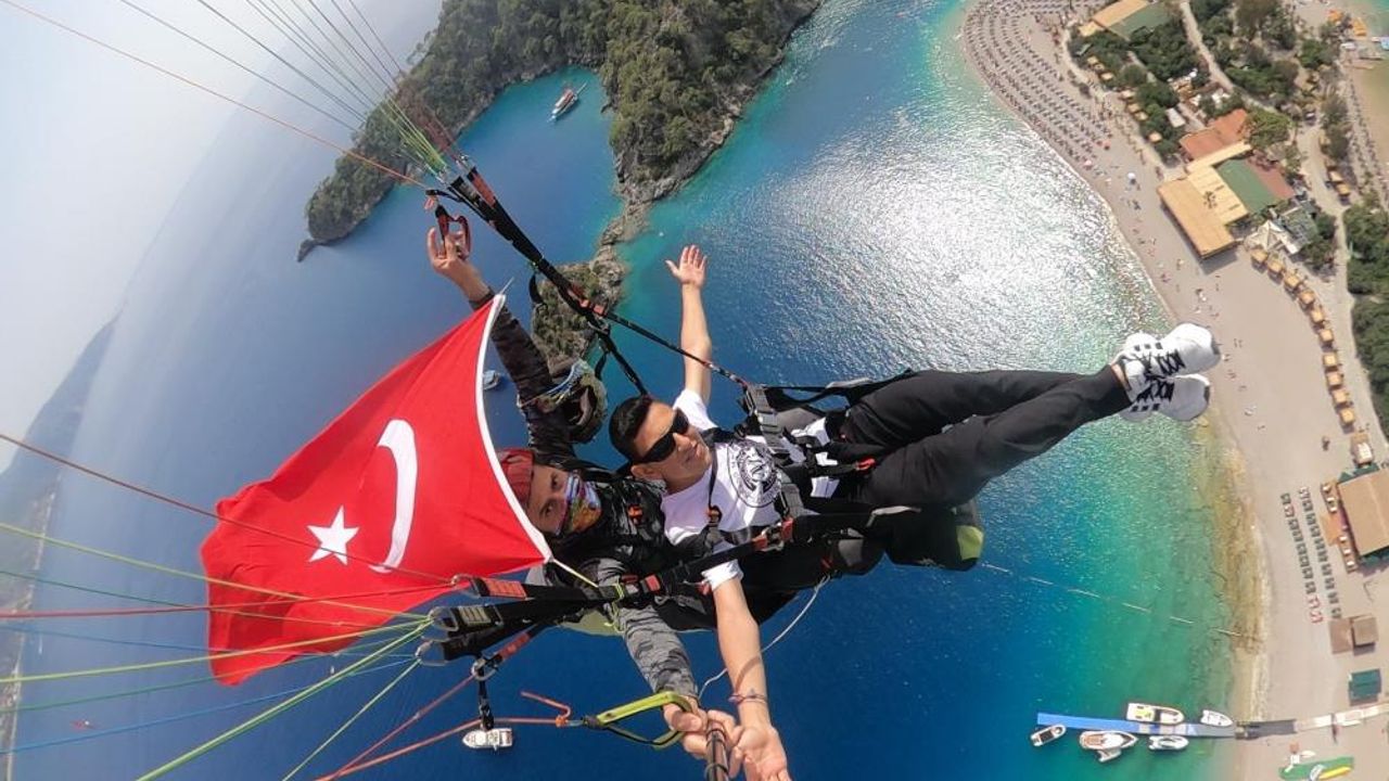 Etkinliklerin en dikkat çekici bölümlerinden biri ise gökyüzünde yaşandı. Öğrenciler, tecrübeli yamaç paraşütü pilotları eşliğinde Babadağ’dan gökyüzüne yükseldi. Uçuş sırasında açılan Türk bayrağı, gökyüzünde gururla dalgalandı.